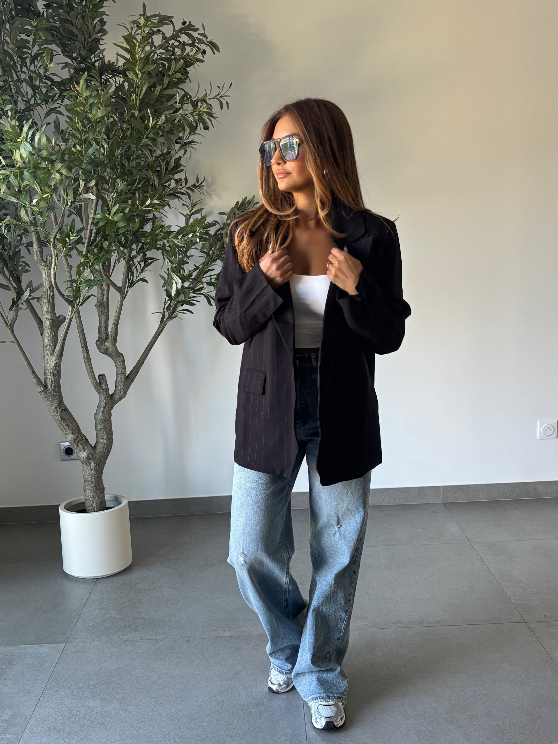 - Rayures fines pour structurer visuellement la silhouette sans rigidité