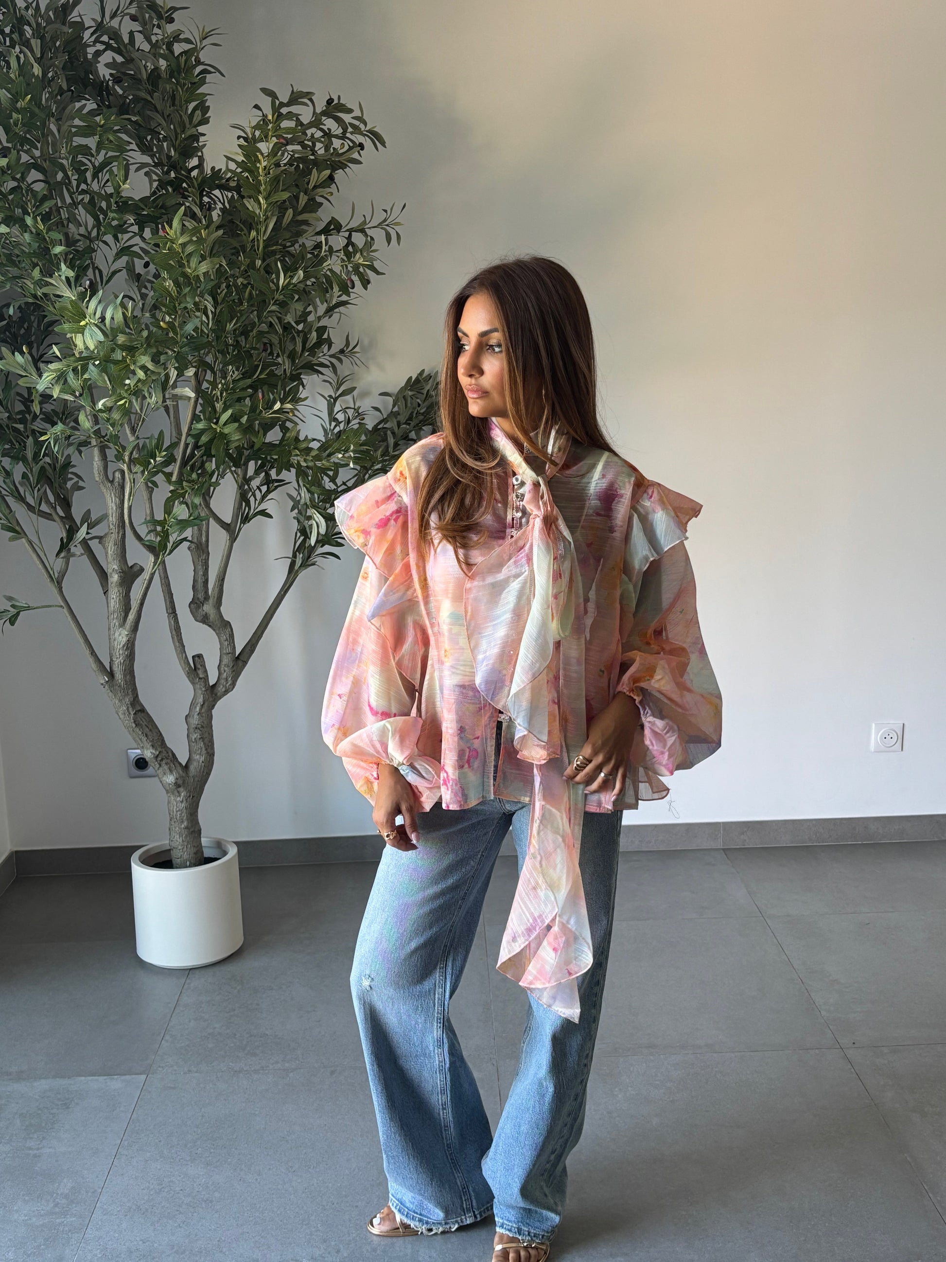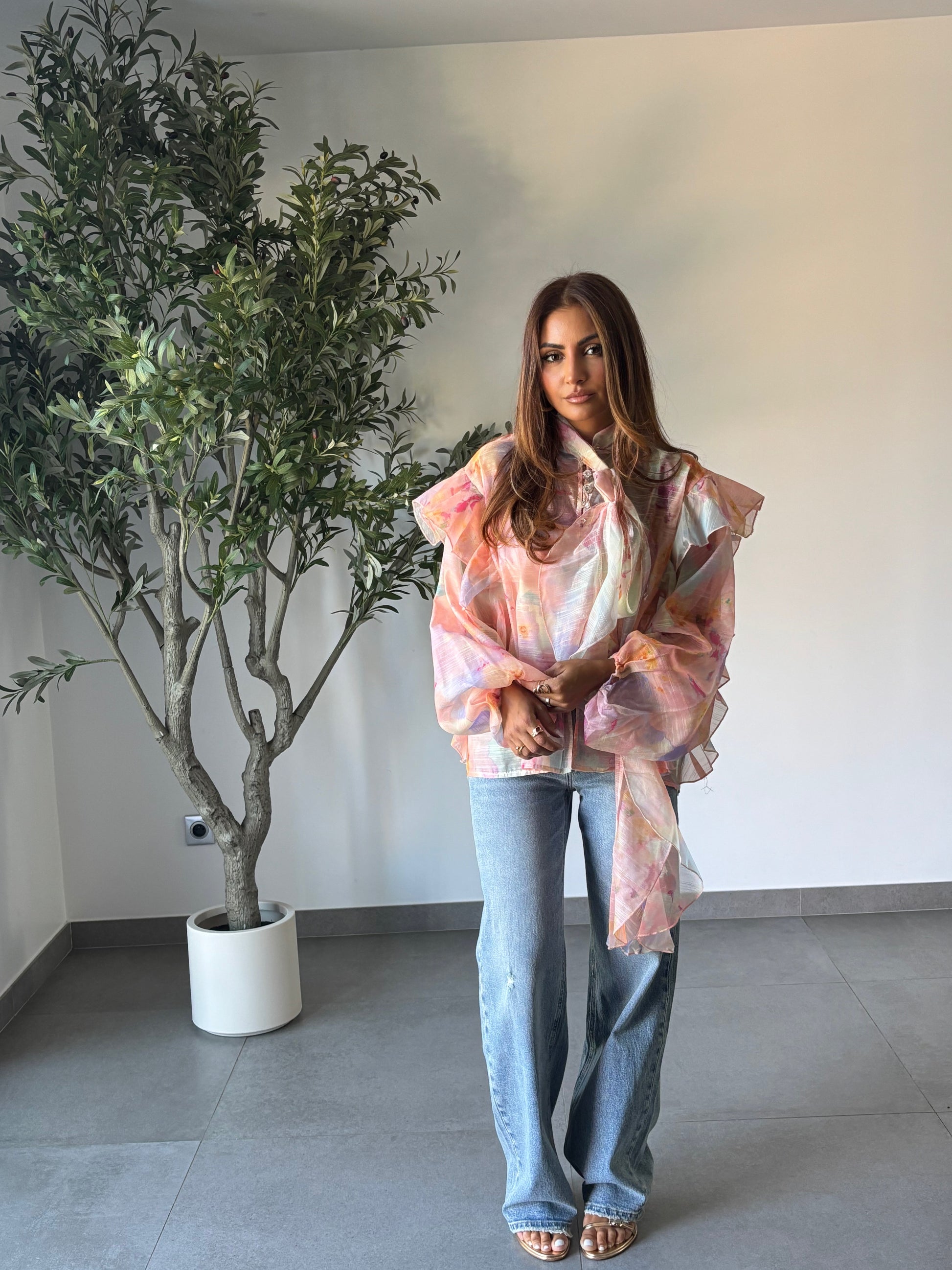 - Détails volantés sur les épaules et le bas des manches, ajoutant du mouvement à chaque geste