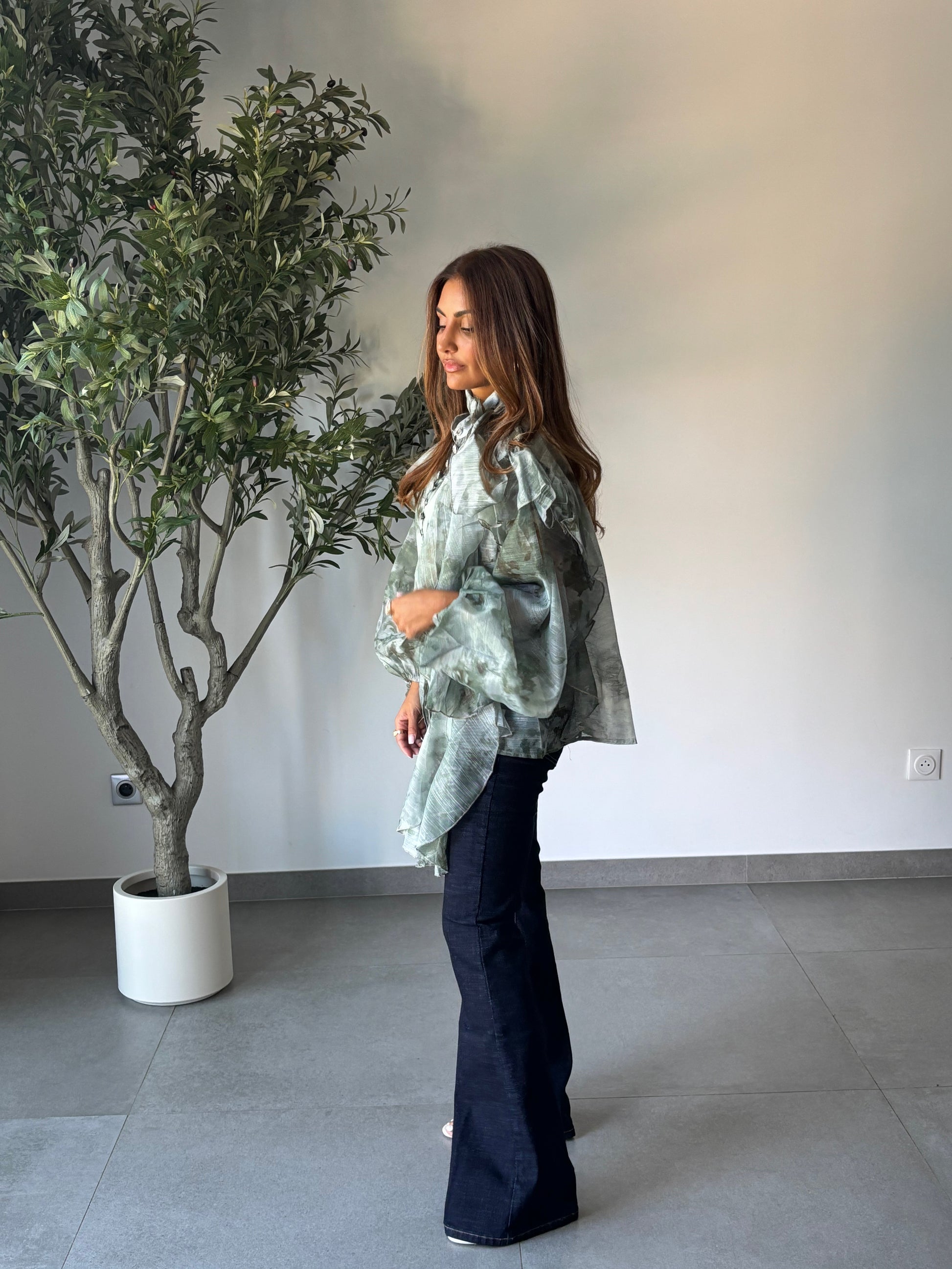 - Volants délicats sur les épaules et les manches, pour une touche féminine pleine de mouvement