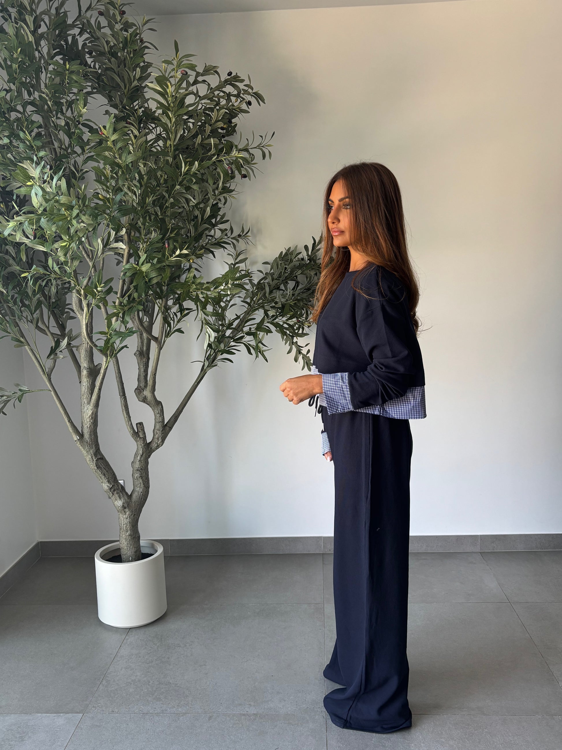 Ensemble deux pièces bleu marine, alliant confort et style moderne.