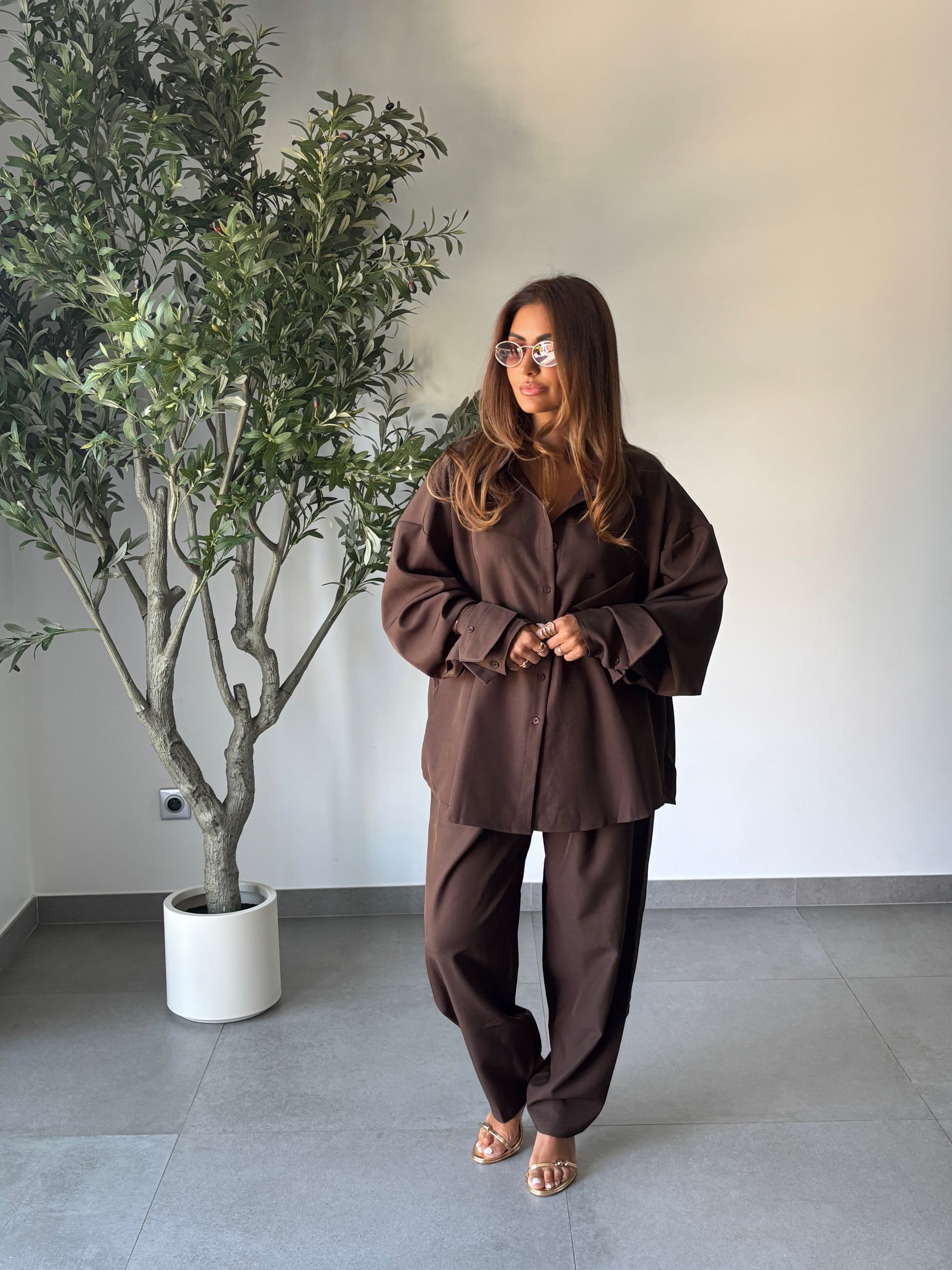 - Pantalon ample marron, esprit casual chic avec une touche féminine