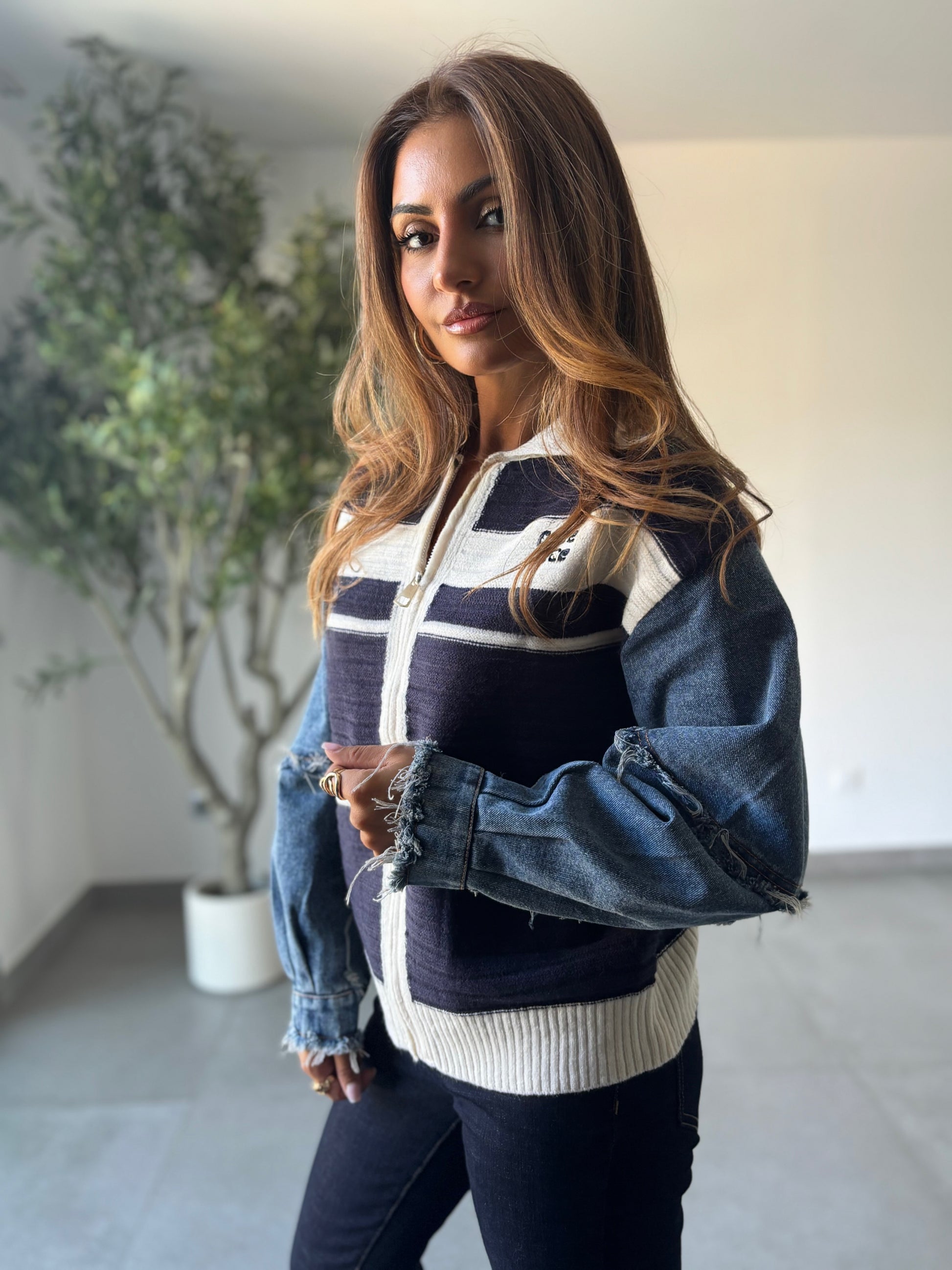 Tissu doux et confortable, avec un mélange de denim et de matières structurées, apportant à la fois confort et style.